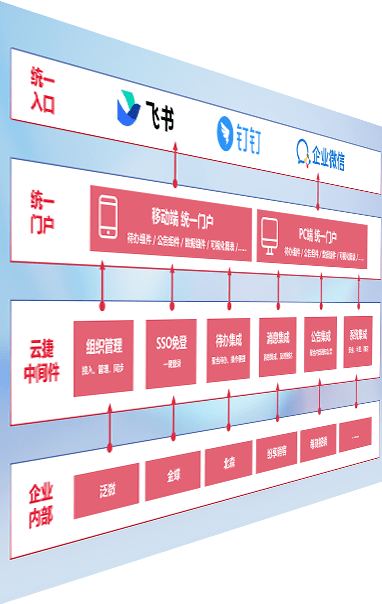 对协作平台提供支持服务,,支持企业应用与协作平台对接,,包含组织同步、、、消息集成、、、、待办集成等。。。。支持目前主流的协作平台:钉钉、、企微和飞书。。。。